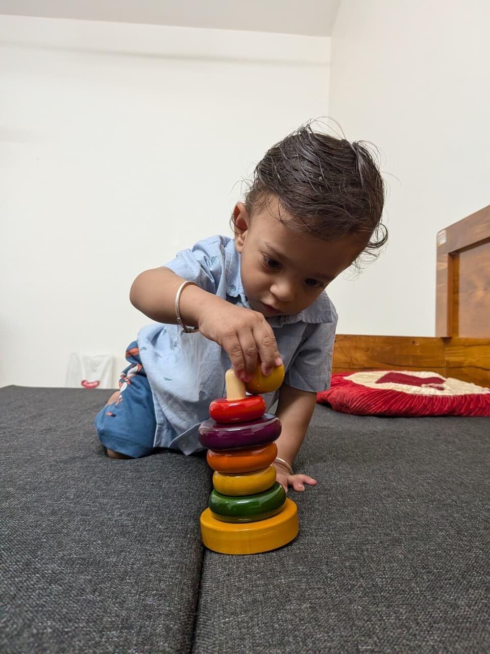 The ring stacker from Toy Trunk is so thoughtfully designed. It not only engages my child for hours but also helps in developing fine motor skills in a fun, natural way.